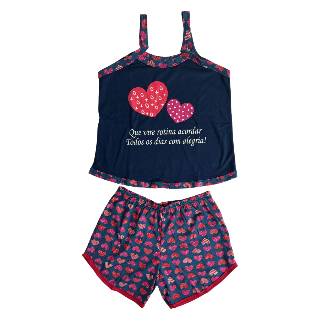 Nosso Baby Doll é composto de uma blusa de alças, com variedades de cores e lindas estampas e com toque de elegância e praticidade. O short curto é perfeito para noites quentes e possui elástico para o ajuste adequado. Com tecido leve e confortável, essa peça super charmosa proporciona uma noite de sono perfeita e agradável. Vista-se com conforto e estilo!